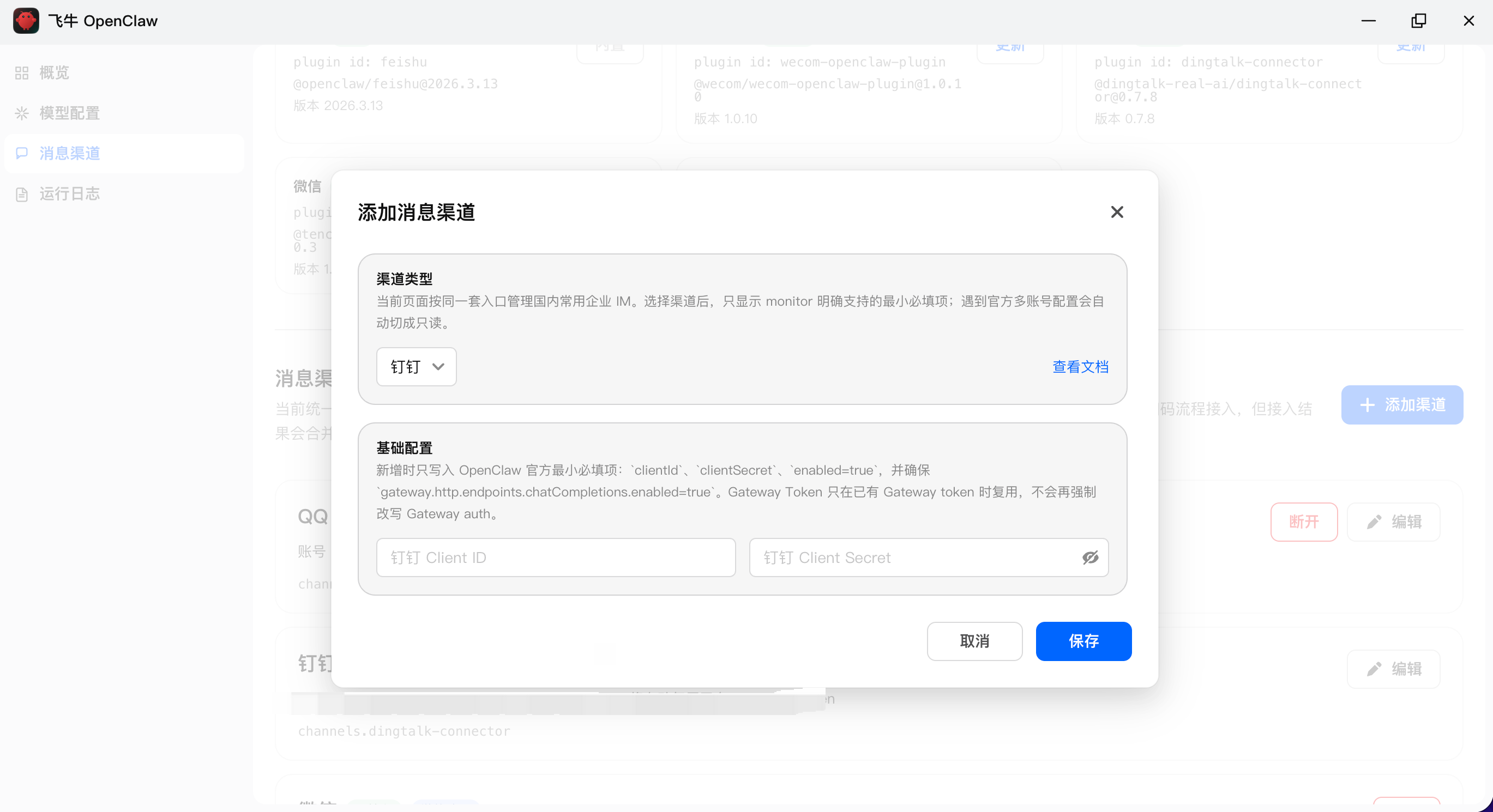 2.2. 配置钉钉机器人消息渠道