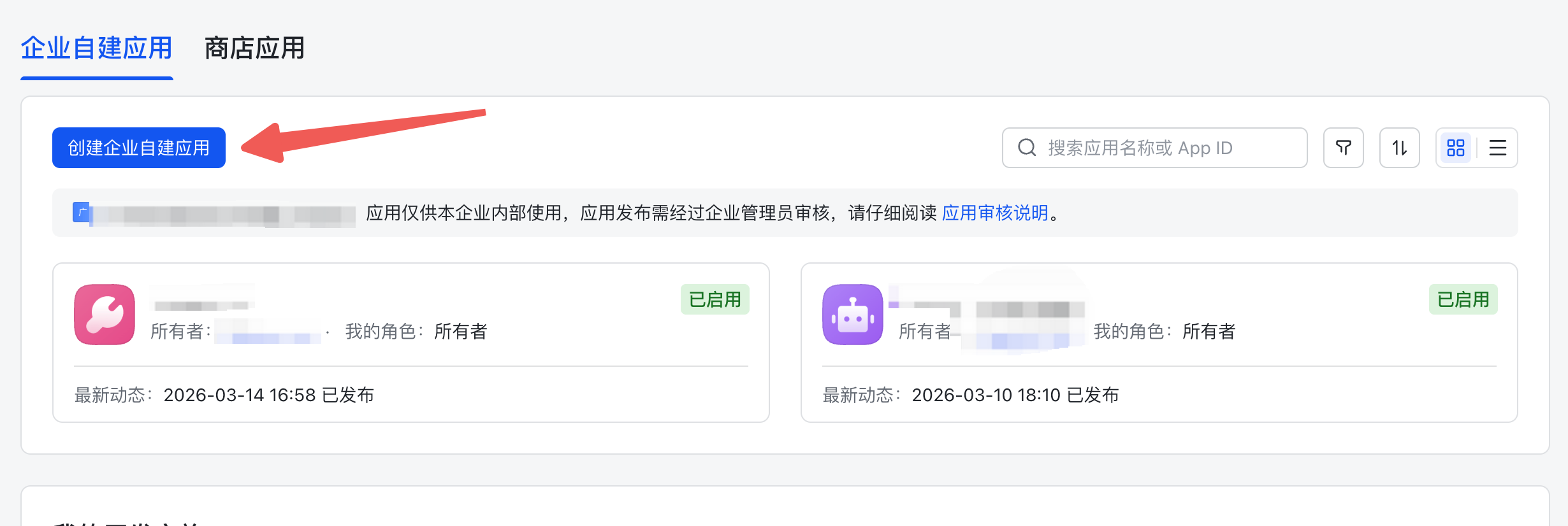 - 打开飞书开放平台:https://open.feishu.cn/app