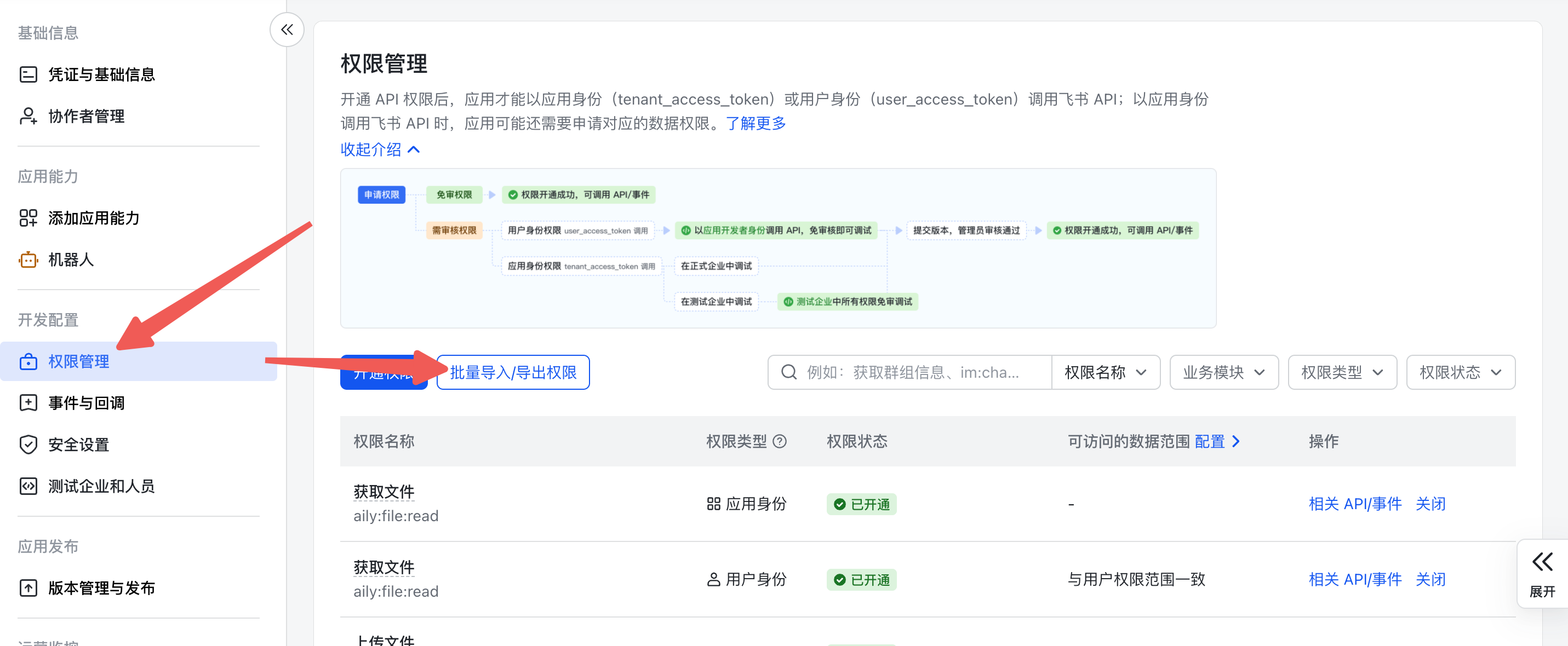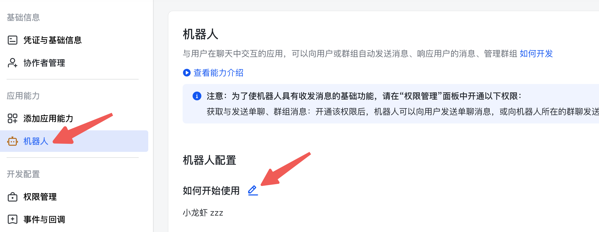 im:message:send_as_bot:以机器人身份发送消息im:message:readonly:读取消息内容im:message.p2p_msg:readonly:读取私聊消息im:chat.members:bot_access:访问群成员信息