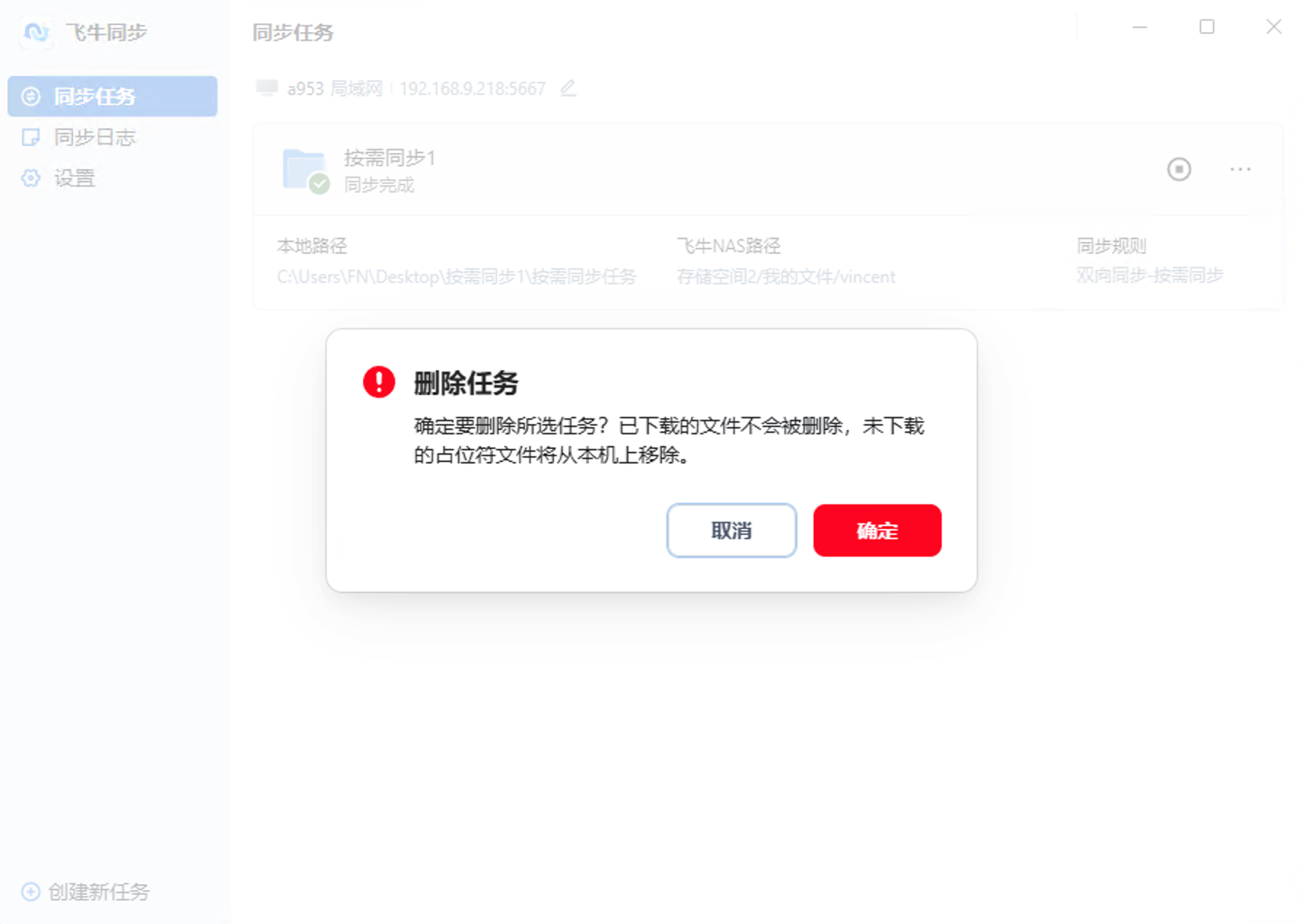 删除按需同步任务时:
